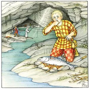 Crying from the name calling, I was deeply comforted by grandmother’s tale of the Salmon of Wisdom being barbequed by a bard for his own enlightenment by his young apprentice, Finn. When hot fat splattered young Finn, he sucked his thumb. All the knowledge held by that Salmon…who had eaten hazelnuts in the stream below the Tree of Wisdom, then entered Finn rather than the bard. Later, as I trained in child development, hypnosis and trauma healing, I recognised that child thumb-sucking response as protective mild dissociation, self-hypnosis and trauma healing. By eleven, I passed the exam that opened the door to secondary school… in a convent.